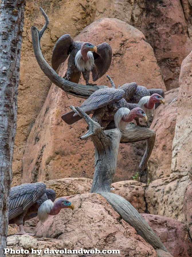 Vultures | These are scavenger birds that feed on the food left by the lions. They most strongly resemble the species Rüppell's Vulture (Gyps rueppelli). | Jungle Cruise | |