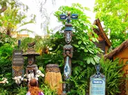 Tikis from the Enchanted Tiki Garden are scattered throughout the village.