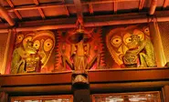 The building is enchanted by various Māori deities or, "Tiki Gods" who embedded magical properties within the tiki room. This allows for the birds of the Tiki room to communicate in human language, tikis to come to life, and the flowers to be able to sing. The Tiki Room is a place of international celebration however too much celebration is known to anger the Gods, causing disasters. The tiki room is also, of course, decorated with wooden architecture and sculptures depicting, "Tiki" humanoids.