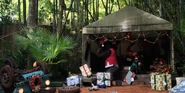 Albert Awol makes several references to the camp and its gorillas in his audio-loop. At one point Awol asks "How many gorillas does it take to destroy a base-camp? An average of 8 minutes for a family of gorillas to destroy a typical base camp". Awol also tries to contact the owner of the jeep which the gorillas flipped and comments on the gorillas having stolen the skippers' film-projector, postponing movie-night. Nigel Greenwater reports in his loop (set in 1935/1936) that a group of big-game hunters had their camp raided by the gorillas.