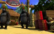 The gorillas serve as the antagonists of the second-level of the Jungle Cruise mini-games. Here, they raided an archaeological camp and players must play monkey-see-monkey-do to have them remove the stolen archaeological finds.