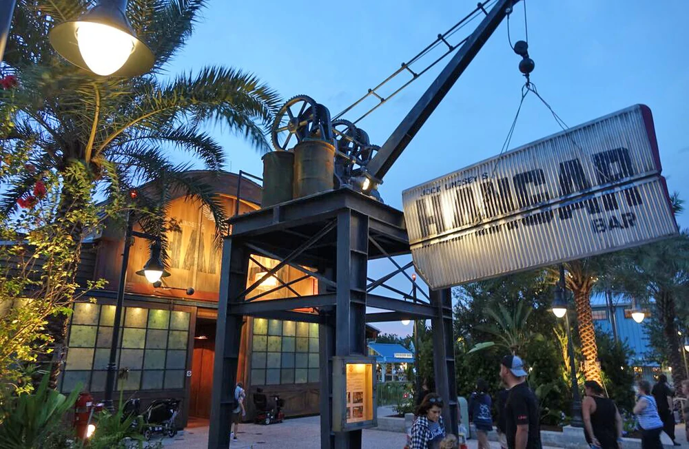 Jock Lindsey's Hangar Bar started as a hangar at 1138 Seaten Avenue in the sleepy Florida town of Disney Springs, built by aviator Jock Lindsey in 1948. Lindsey fell in-love with the town while on a mission with employer Indiana Jones in a search for Florida's elusive Fountain of Youth. In 1955, Jock turned the building into, "Jock Lindsey's Hangar Bar" to serve townsfolk and adventurer friends such as those in the Adventurers Club and Society of Explorers and Adventurers.