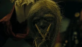 Shrunken Heads are created via skinning an enemy's head and wrapping said pelt around a wooden ball. The remains also have red seeds placed under their nostrils, have their mouths and eyes sewn shut, and have their lips sealed with three palm pins. The heads are subsequently boiled with herbs to tan and shrink the flesh before being removed and rubbed with ash to prevent the head's spirit from leaving. While drying, the skin would be moulded to maintain its human features.